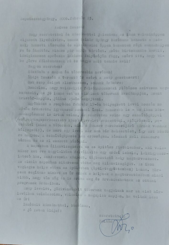 – Kötött műfaj az ikonfestés – nyilatkozta korábban – de ott vagyok magam is a szemlélők között. Lelkemből és emlékeimből festek: az arany szín gyermekkorom gyönyörűséges karácsonyait idézi fel. Hiszem és vallom: ha egy ikon előtt imádkozik valaki, a saját lelkületét látja.